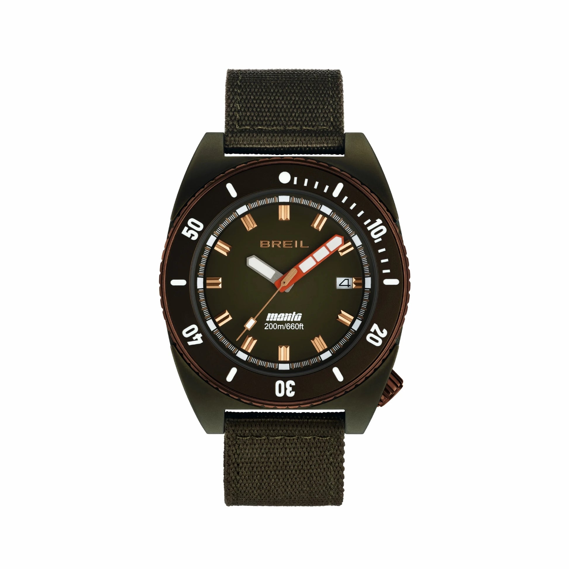 L’orologio Manta Seeker, ispirato al paesaggio italiano e alle nostre città più emblematiche, fonde l’estetica raffinata del mondo urbano con la robustezza e la funzionalità tipica degli orologi diver Manta originali. La variante Wild Green è dedicata alla selvaggia bellezza della maremma. Il cinturino in tessuto canvas è confortevole e versatile e si abbina a una cassa in acciaio con finitura mat color wild green. La cassa racchiude un quadrante a doppio livello dello stesso colore, in cui gli indici color coffee con luminous sono applicati. La lunetta in acciaio color coffee, zigrinata girevole unidirezionale, con disco in alluminio wild green, incornicia il quadrante su cui spicca la sfera dei minuti in arancione. Dotato di movimento al quarzo TMI VJ42, presenta corona e fondello a vite e chiusura ad ardiglione. Con una resistenza all'acqua di 200 metri, gli orologi diver Manta Seeker sono pensati per l'esploratore urbano moderno: robusti e affidabili per le avventure più audaci, ma con un design che li rende perfetti per la vita di città.